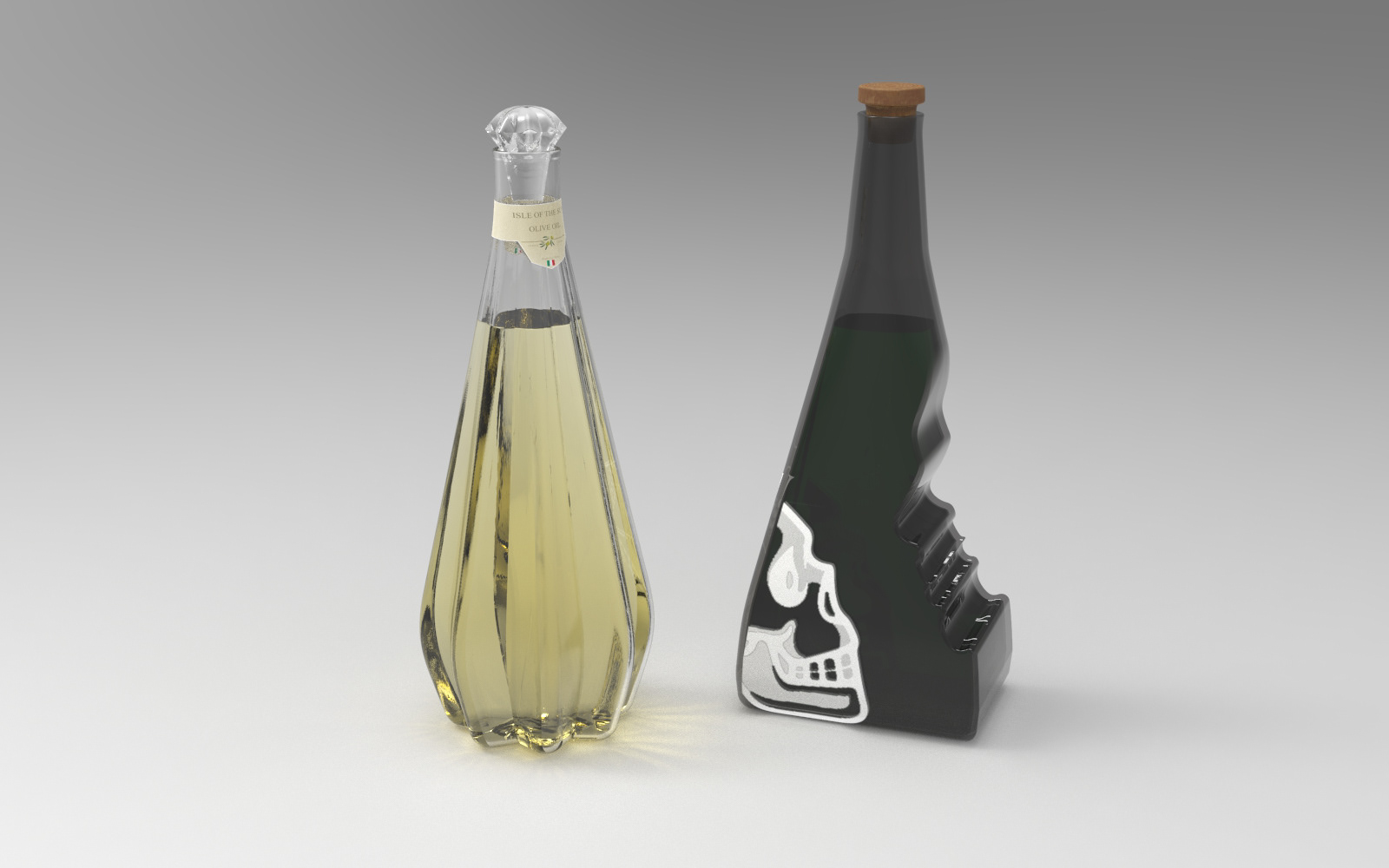 My goal was to design a product that utilizes blown glass that fits into one of the five categories given by Bruni. I chose two categories, one being Spirits and the other Gourmet.